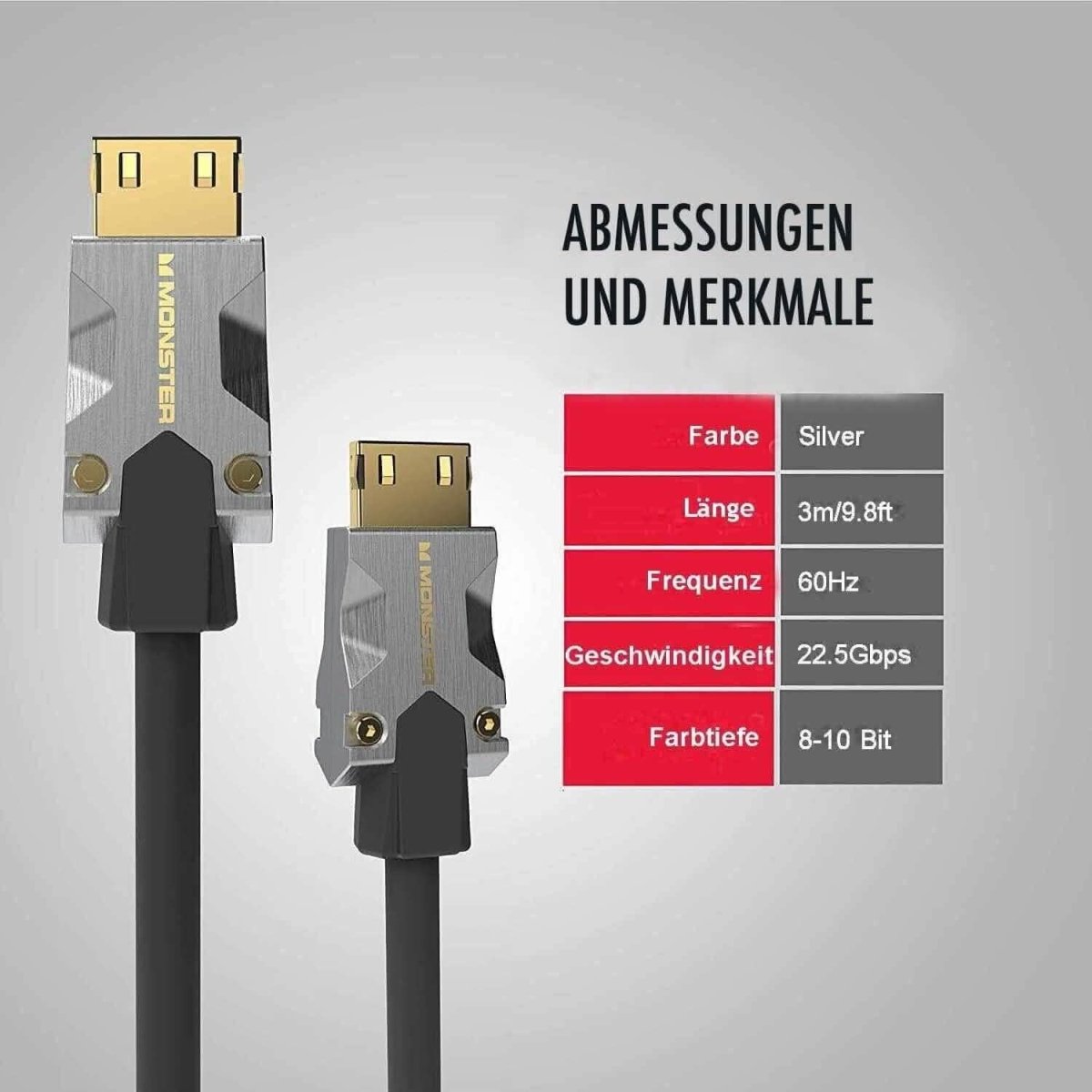- Anschlüsse: HDMI-Stecker auf HDMI-Stecker